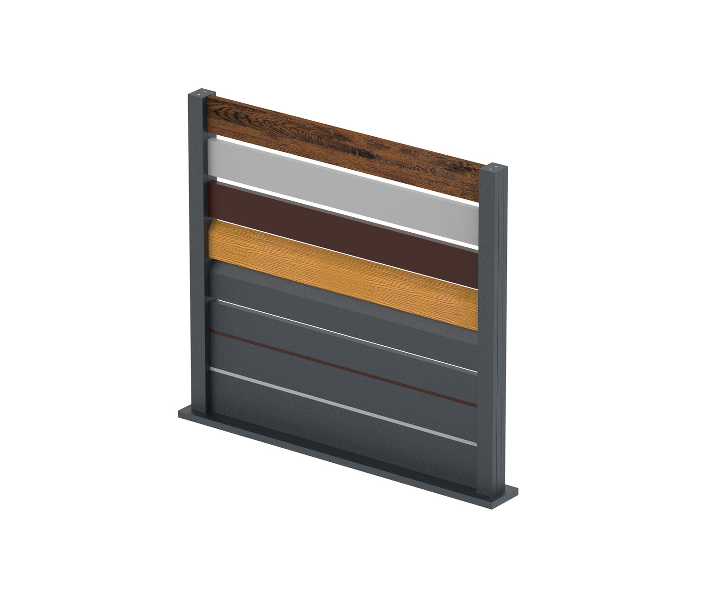 Vzorka slúži na ukážku kvality a dizajnu plotových panelov, pričom je vhodná na výstavné účely, porovnanie farieb alebo ako vzorový prvok pre zákazníkov pri výbere ideálneho plotového riešenia.