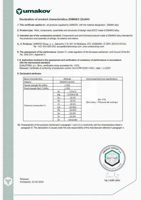 Certyfikat zgodności kontroli produkcji