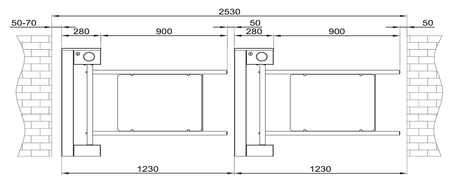 Bramka odpowiednia dla przejść VIP oraz przejść z wózkiem inwalidzkim, wózkiem, wózkiem dziecięcym.