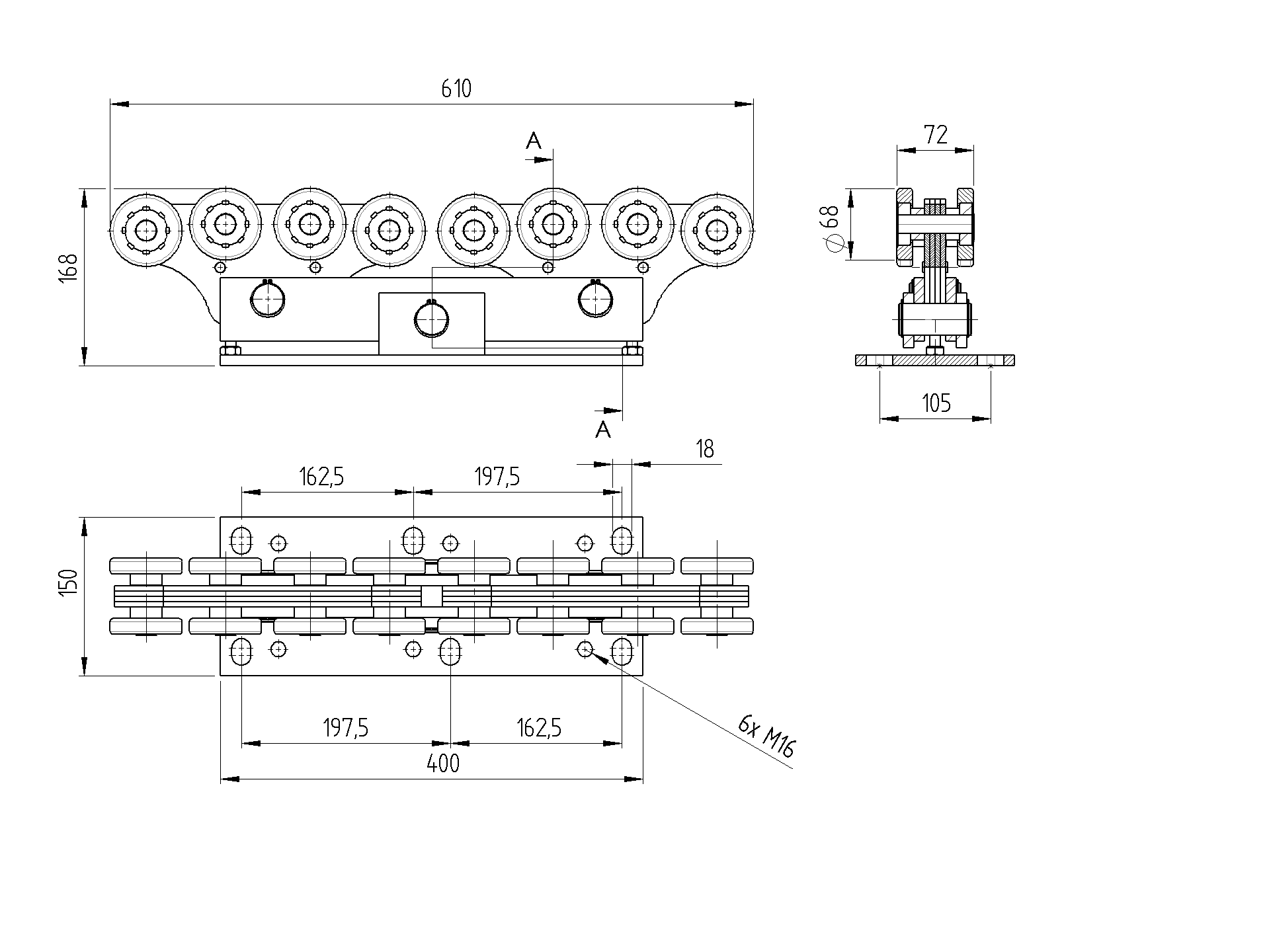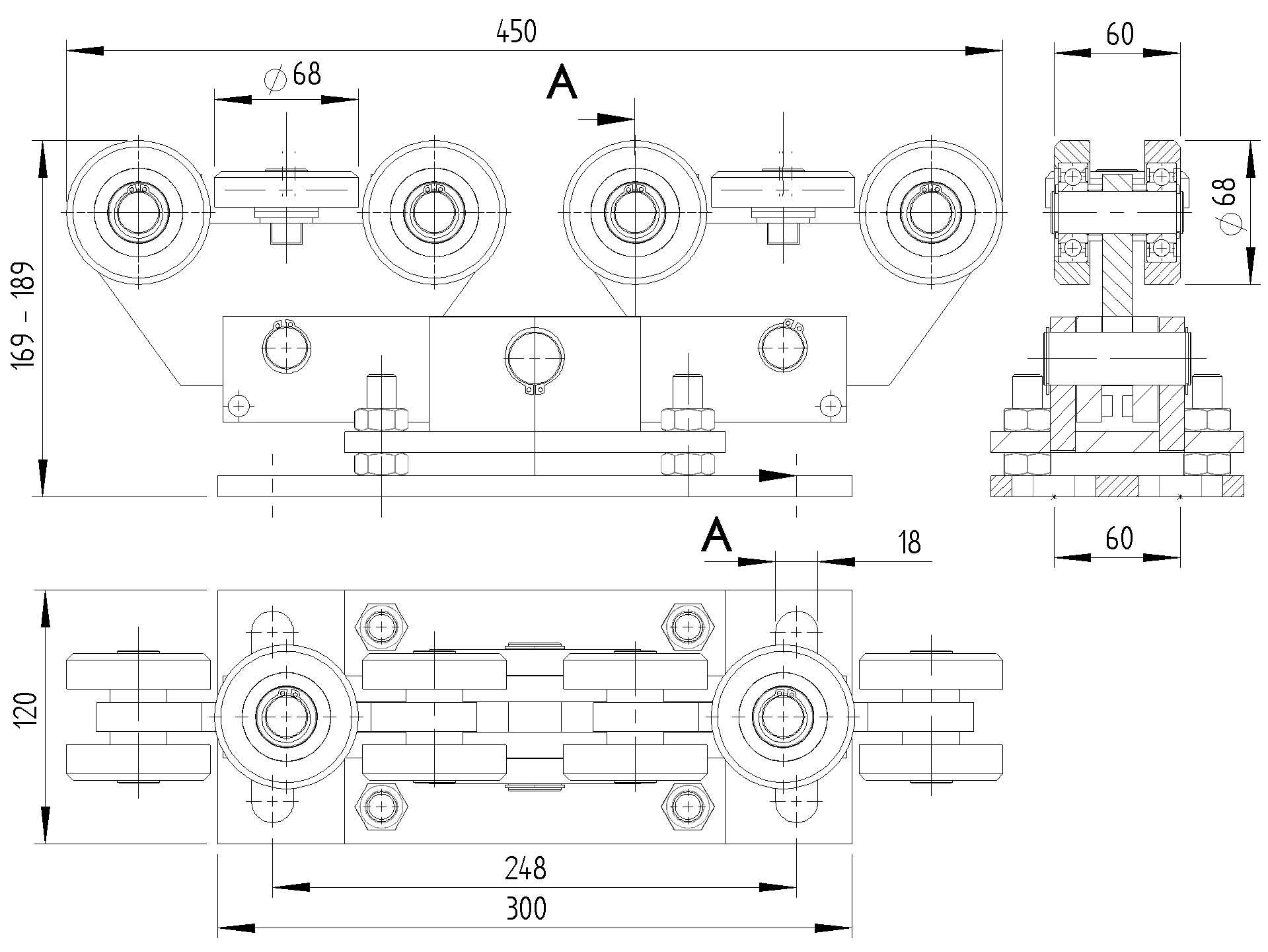 Zestaw do bramy Przesuwnej Zn, NYLON, 70x70mm SV-70x70Zn clasic-NYLON