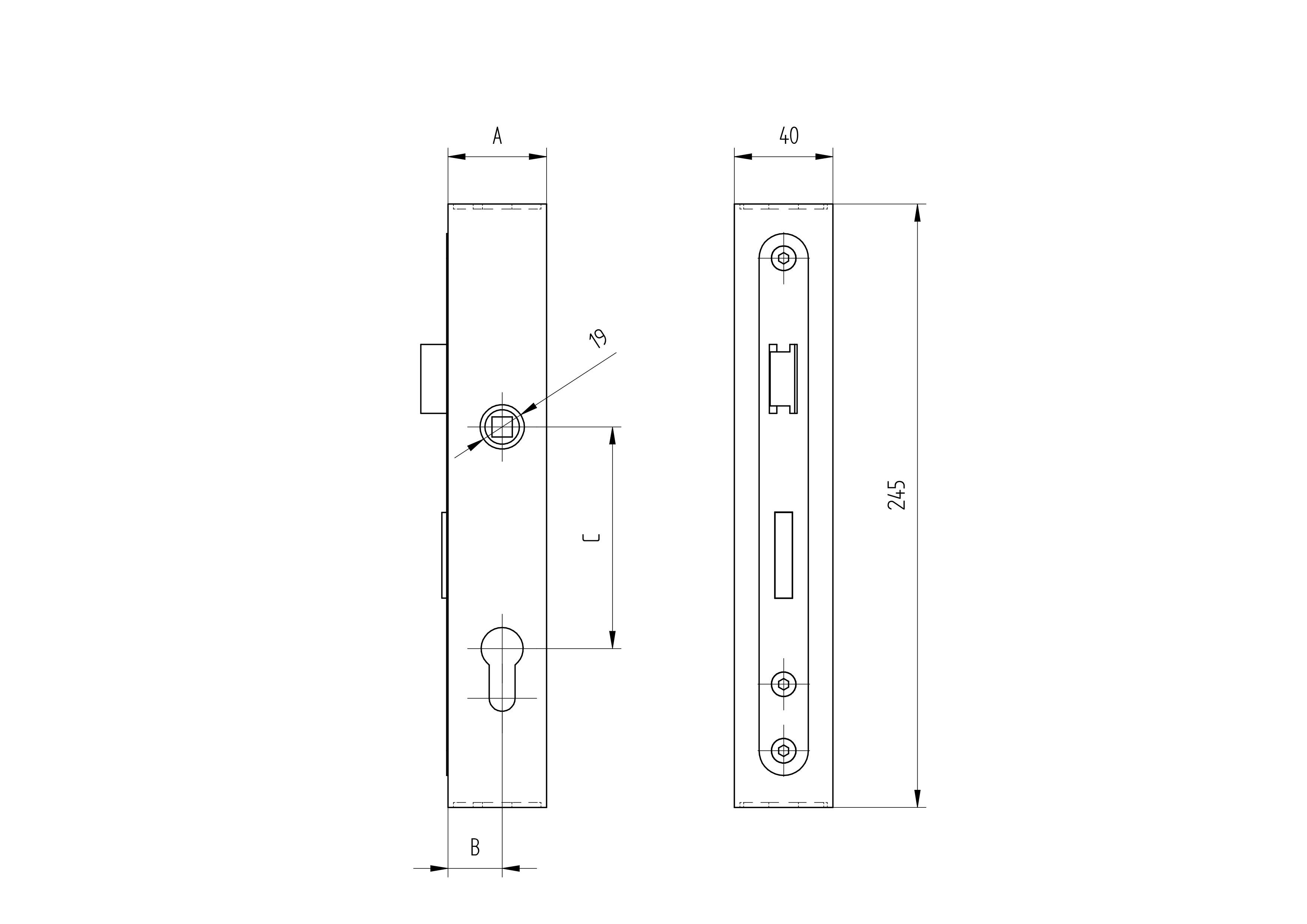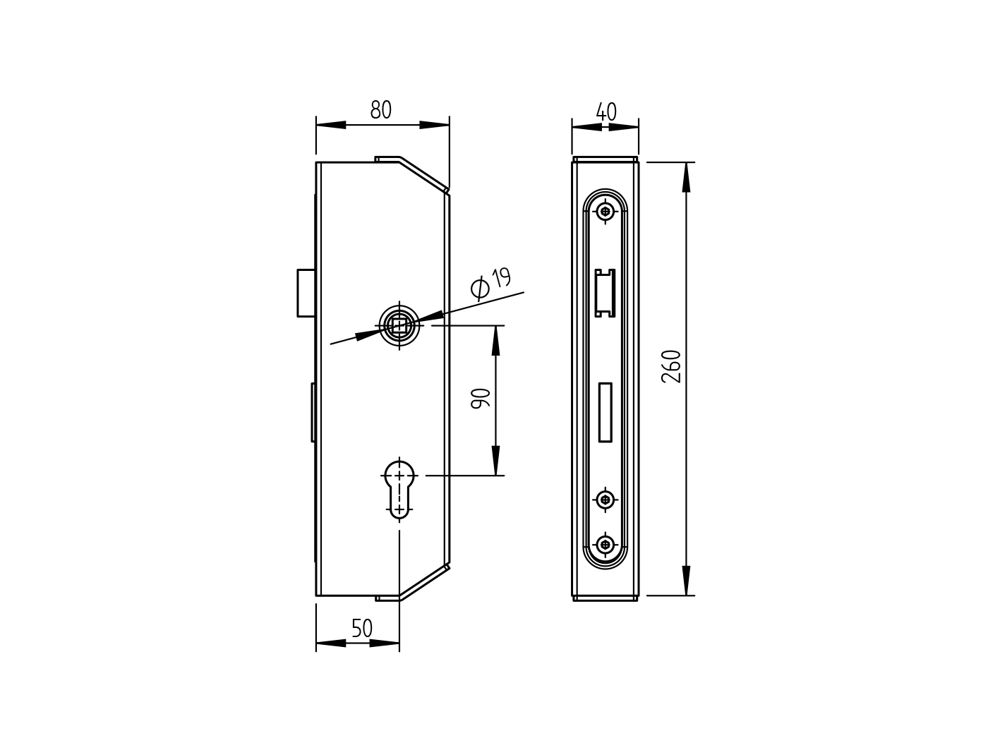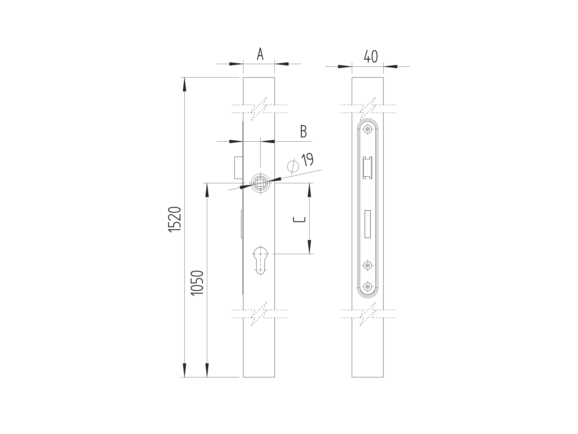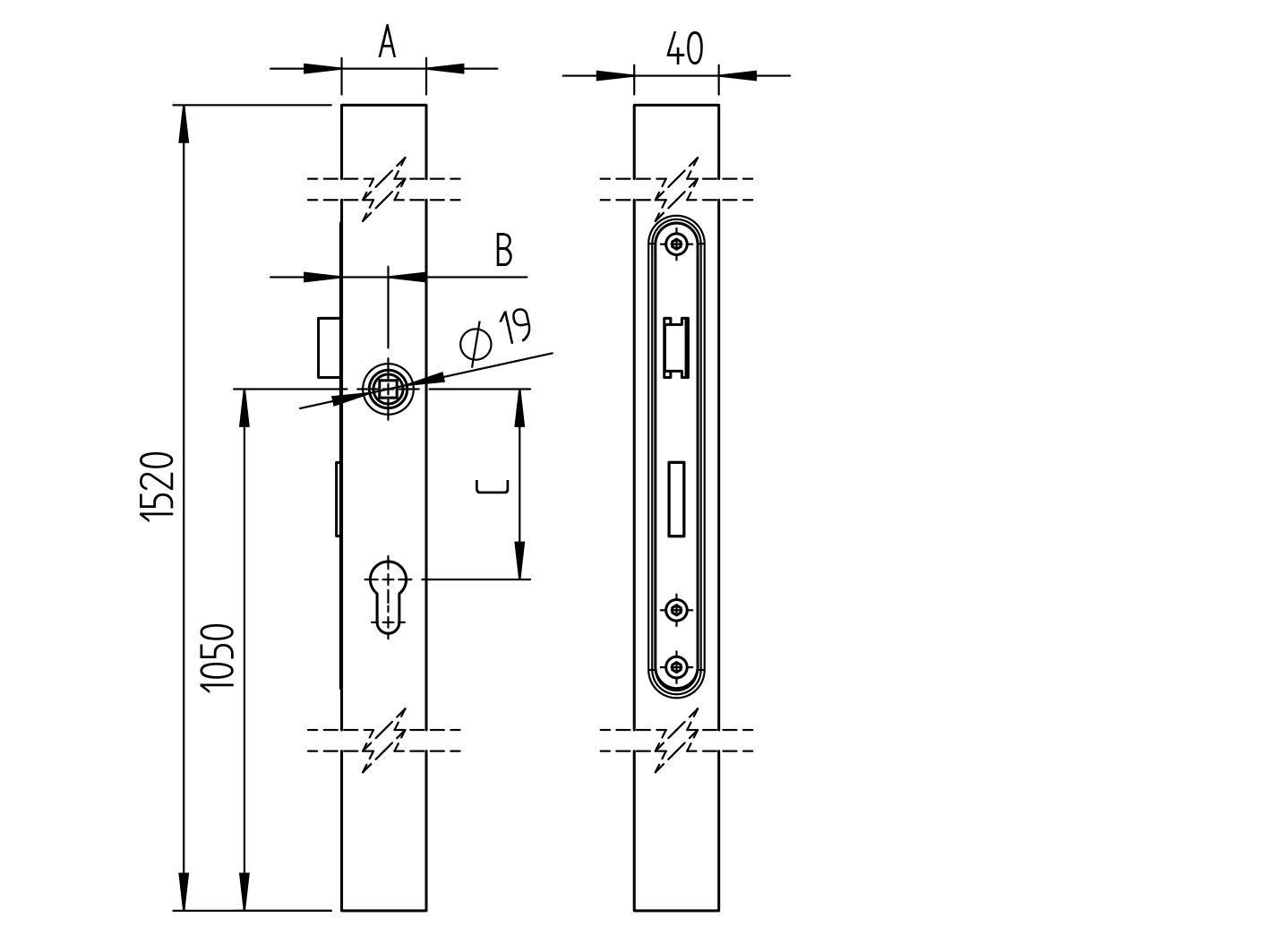 Cząstka zamku komplet bez klamky JP40x40, L2000 B1/63-40x40x2000