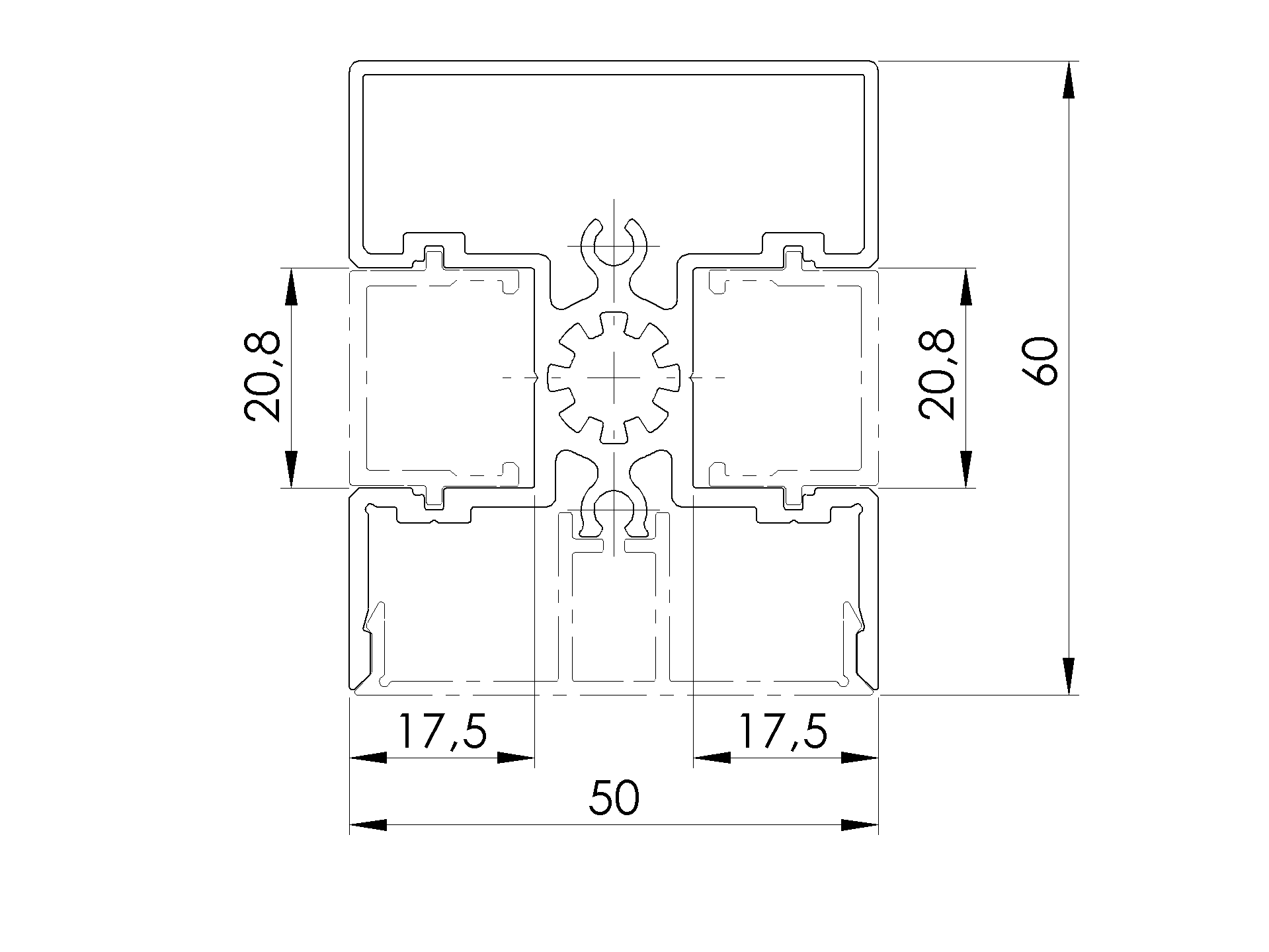 Zestaw aluminiowego słupka 50x60 i nakładki - 6000mm R7016 FG/P50x60-6000-N