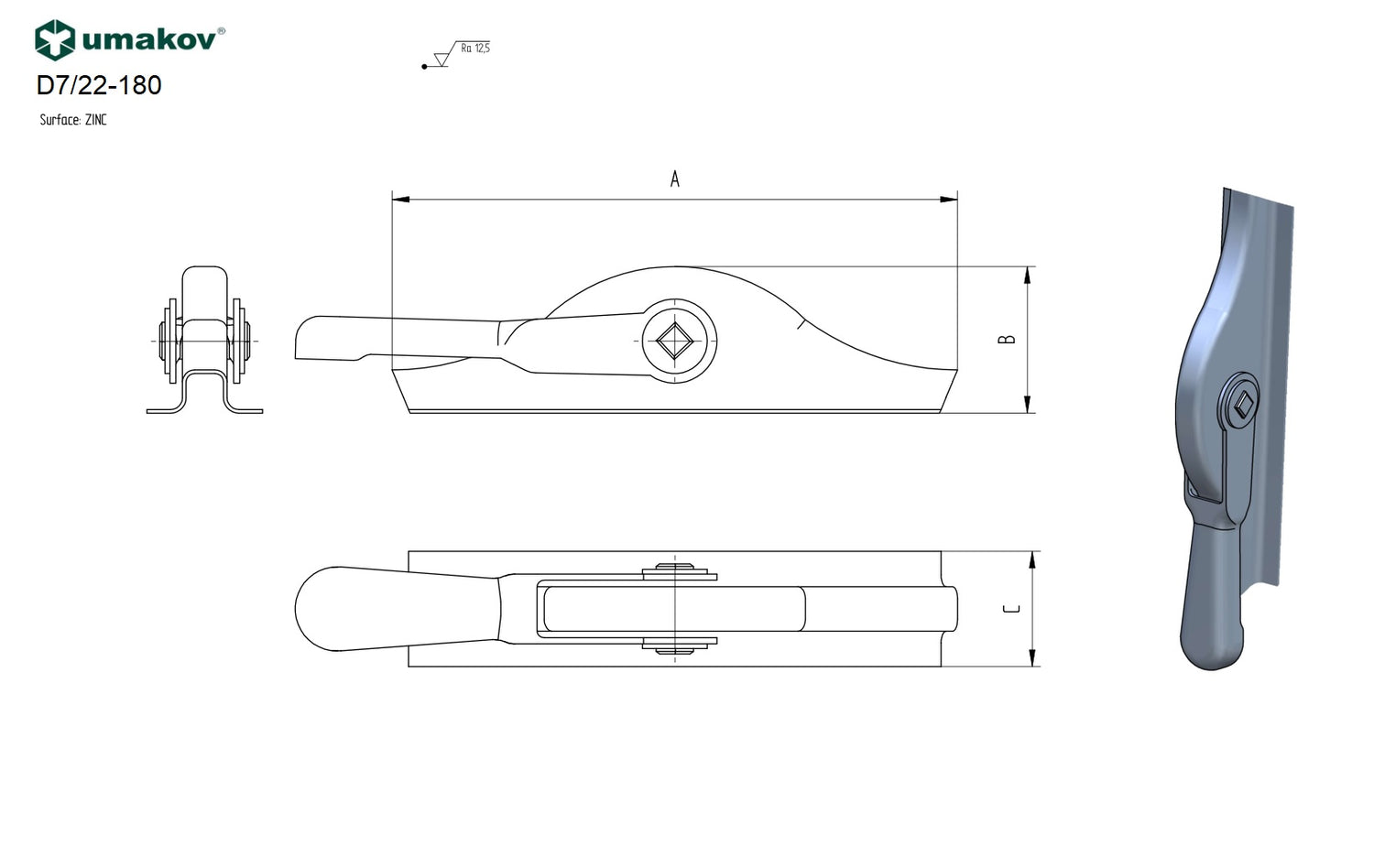 Osprzęt bram Zn, L235mm D7/22-235-Zn