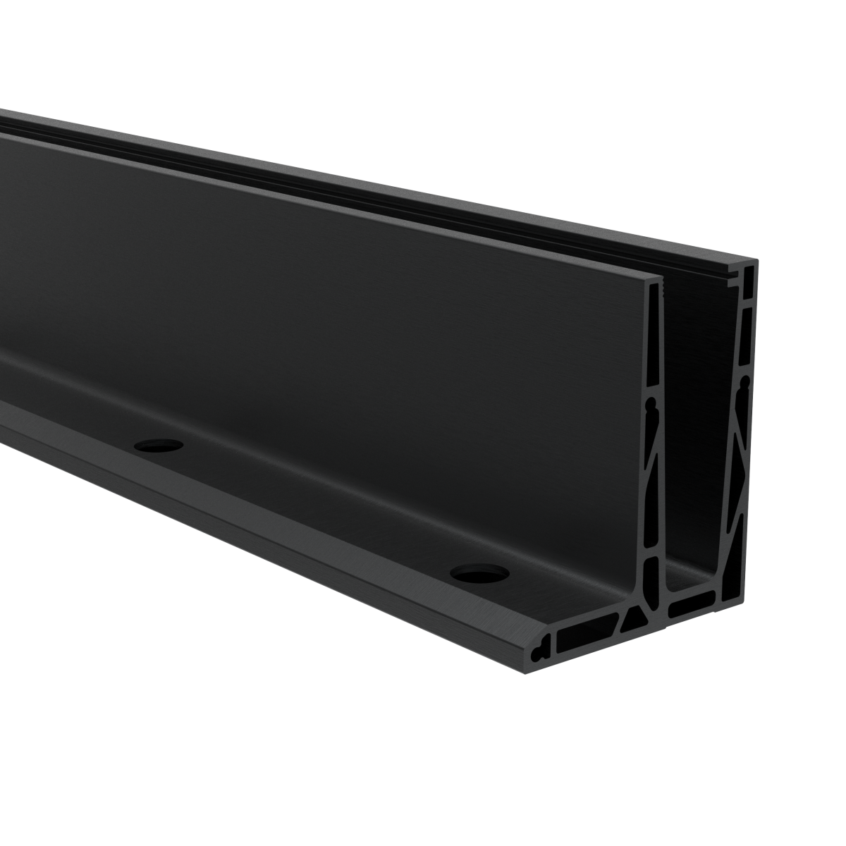 Profil kotwiący AL dla szkła, montaż górny, wykończenie powierzchni lakierowaniem proszkowym, odcień RAL 9005, bez akcesoriów.