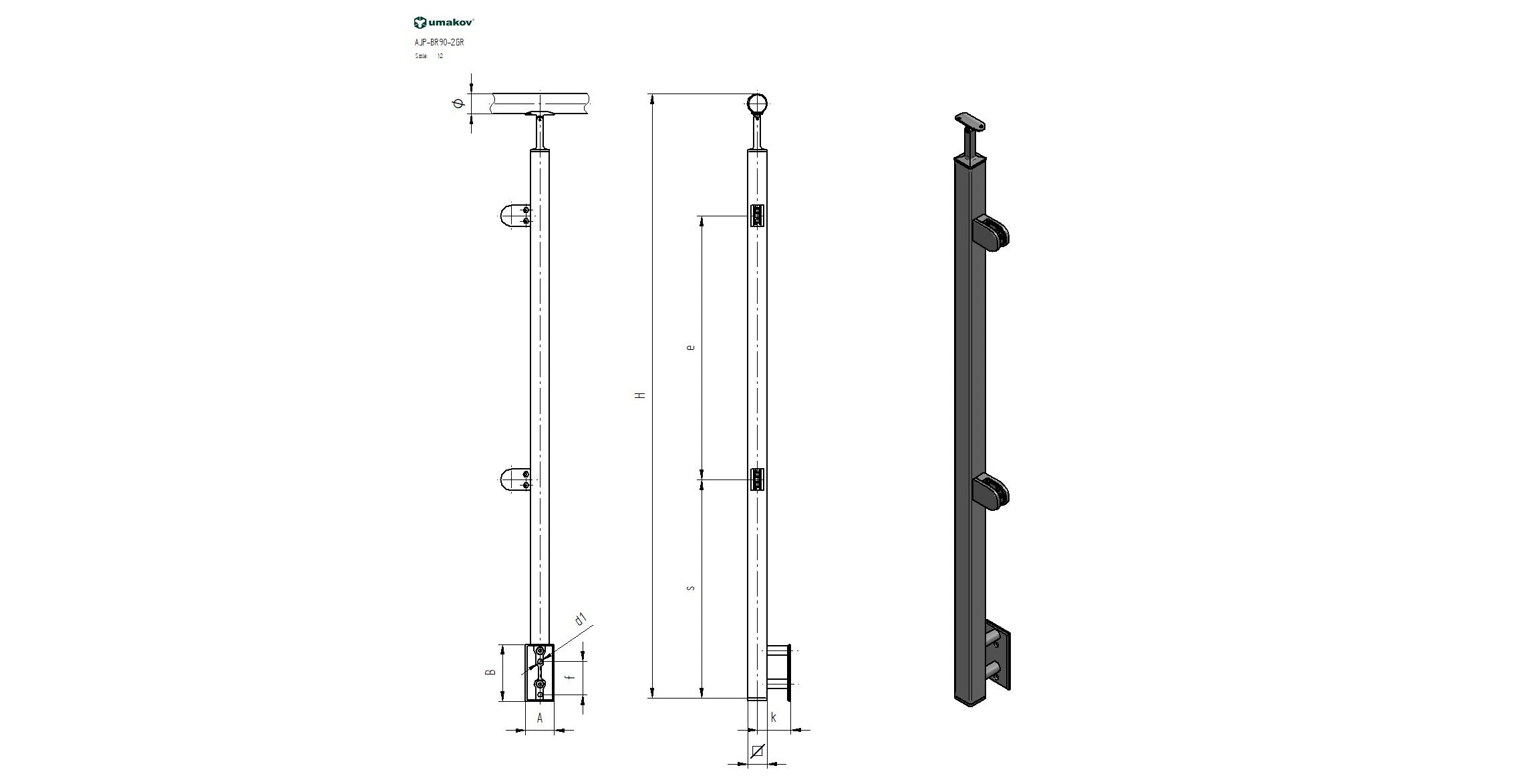 Słupki nierdzewne, schodowe, mocowanie boczne