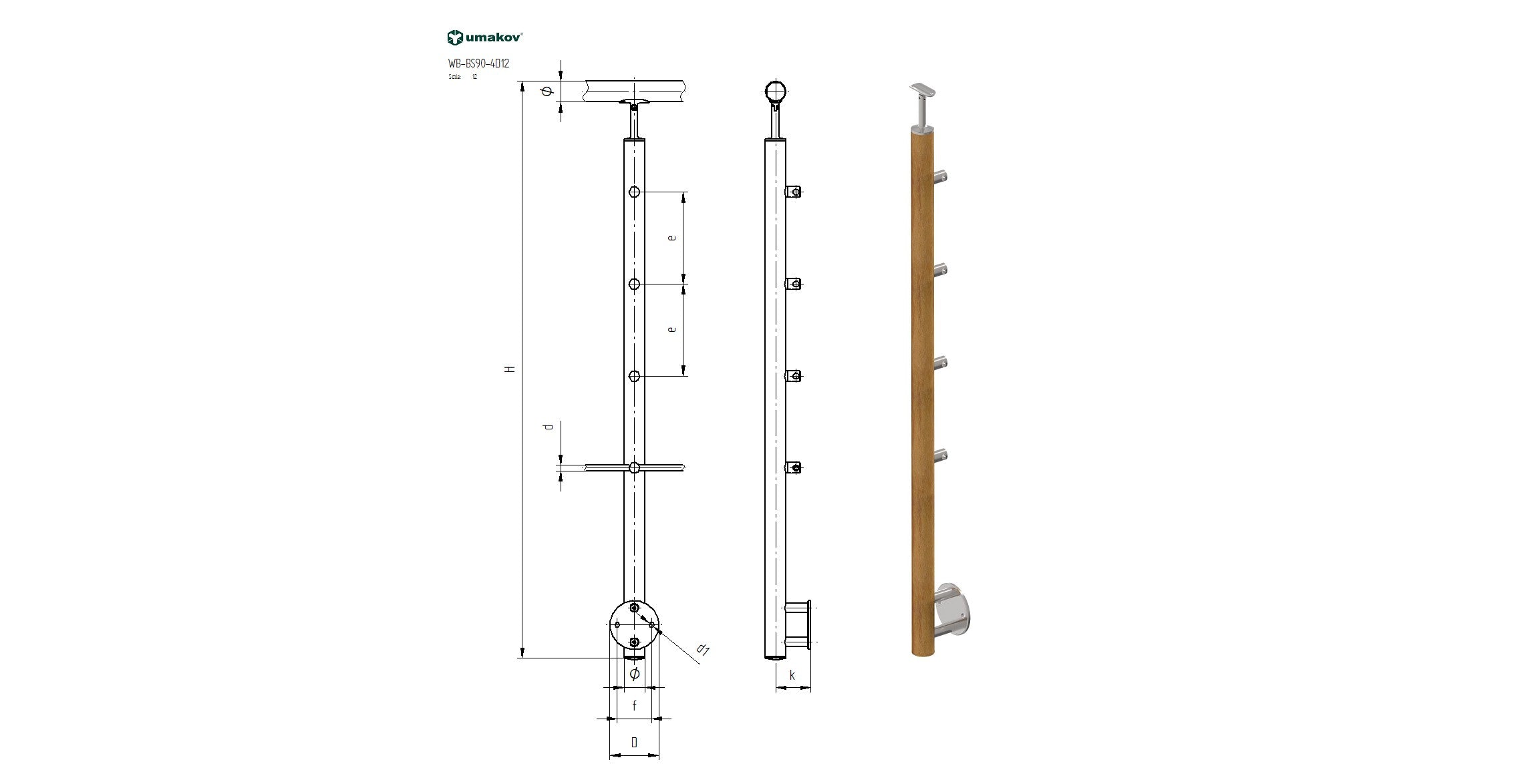 4 szt.MateriałStal nierdzewna AISI 304Wykończenie powierzchniSurowyL12Drewniany słupek DUB (OAK), D50/5xd12/1000mm WD-BR100-5D12