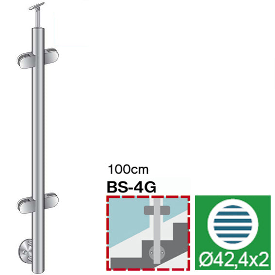 Materiał: Stal nierdzewna AISI 304, Wykończenie powierzchni: Szlifowany, Typ/Długość: Schody/1000mm, Wypełnienie: Szkło, szkło t: 8,76, Model: Model 22, Mocowanie: Z boku