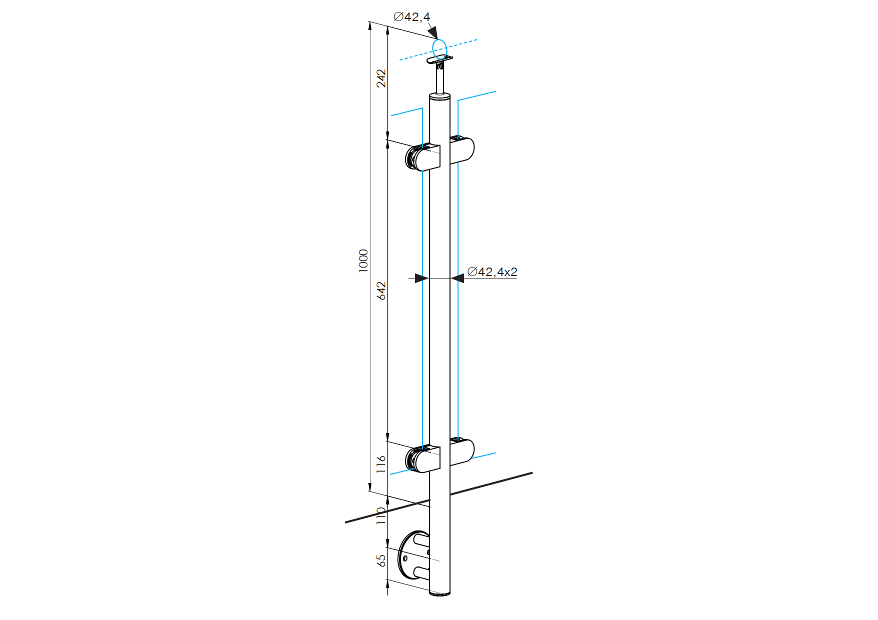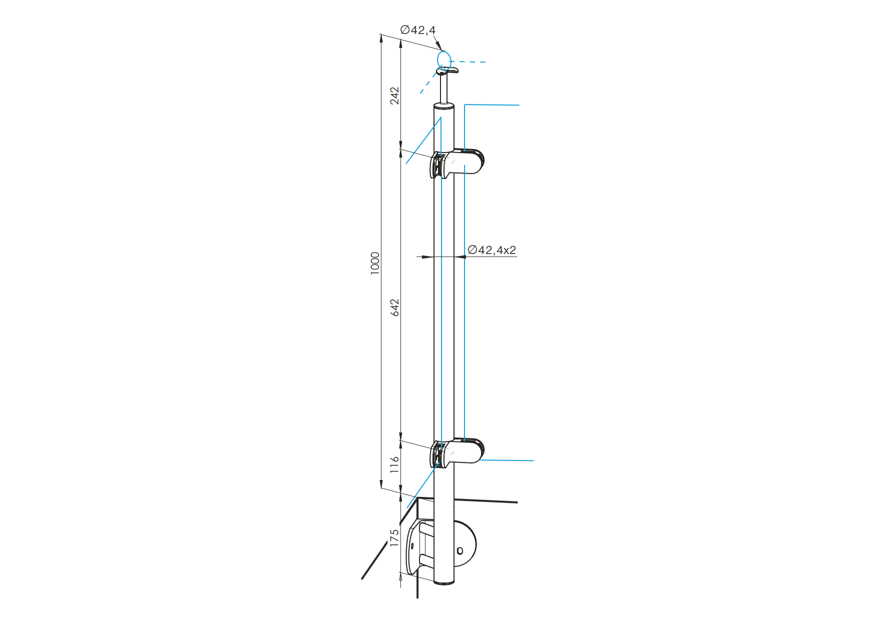 1 szt.MateriałStal nierdzewna AISI 304Wykończenie powierzchniSzlifowanySłupekD42,4x2Obowiązkowe akcesoriaZaślepka na rurę A/5729-242