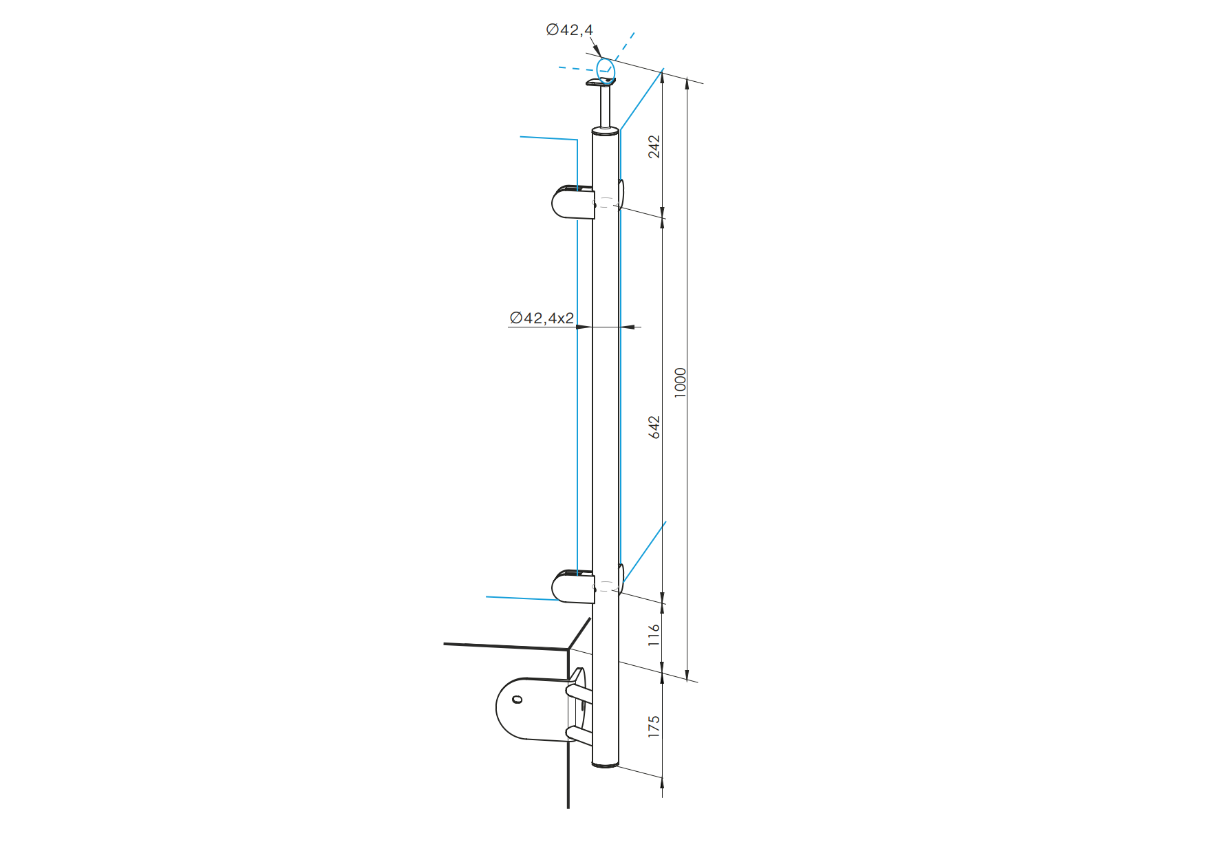 1 szt.MateriałStal nierdzewna AISI 304Wykończenie powierzchniSzlifowanySłupekD42,4x2Podpora poręczy A/0718-242