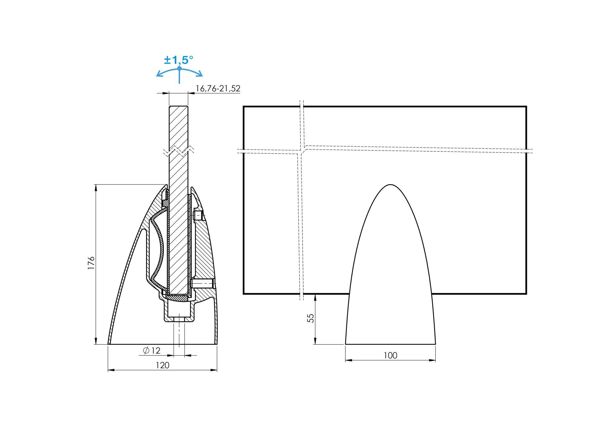 Regulowany spigot - Słupek kotwiący do szkła A22/6501-000