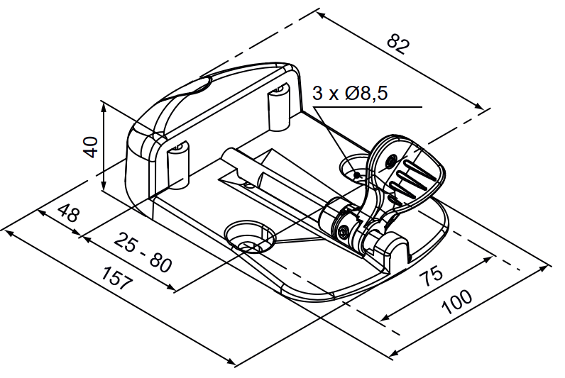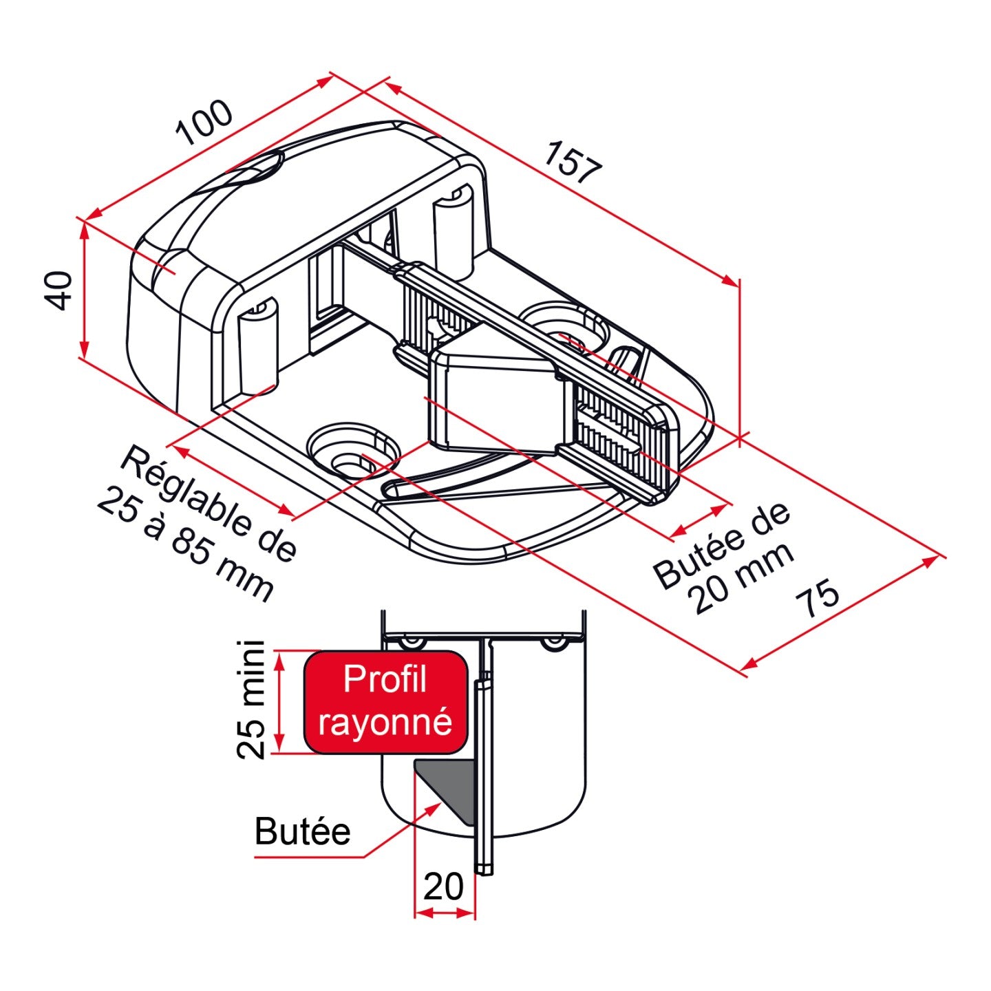 Środkowy ogranicznik z mechaniczną blokadą, 157x100x40mm B1/32-M01