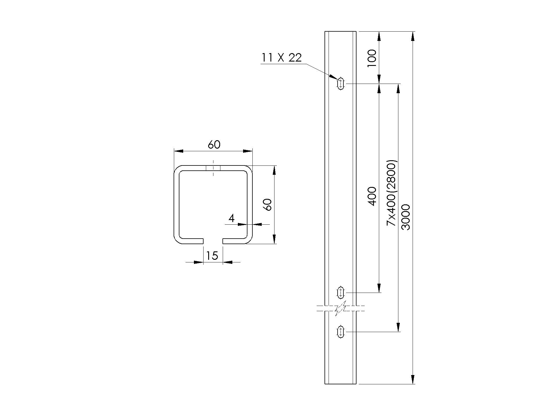 Profil prowadzący z otworami Zn, 60x60x4mm, L3m H/02-60x60-Zn-D-3000