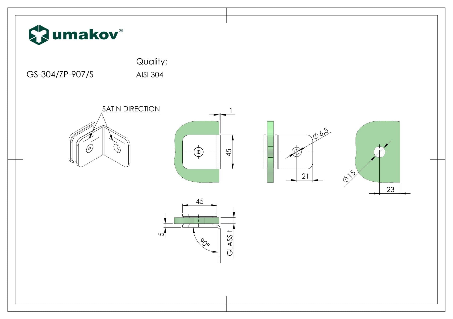 Łącznik szkła, AISI 304, T 8-10 mm GS-304/ZP-907/S