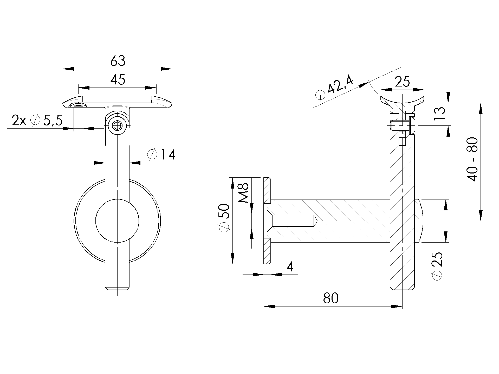 Uchwyt poręczy do ściany A/0145-000
