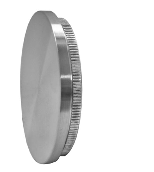 Płaska zaślepka poręczy ze stali nierdzewnej. Połączenie przez wciśnięcie na ząbkowanie.
