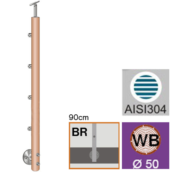 Drewniany słupek BUK (BEECH) D50mm, 4xd12mm, H900