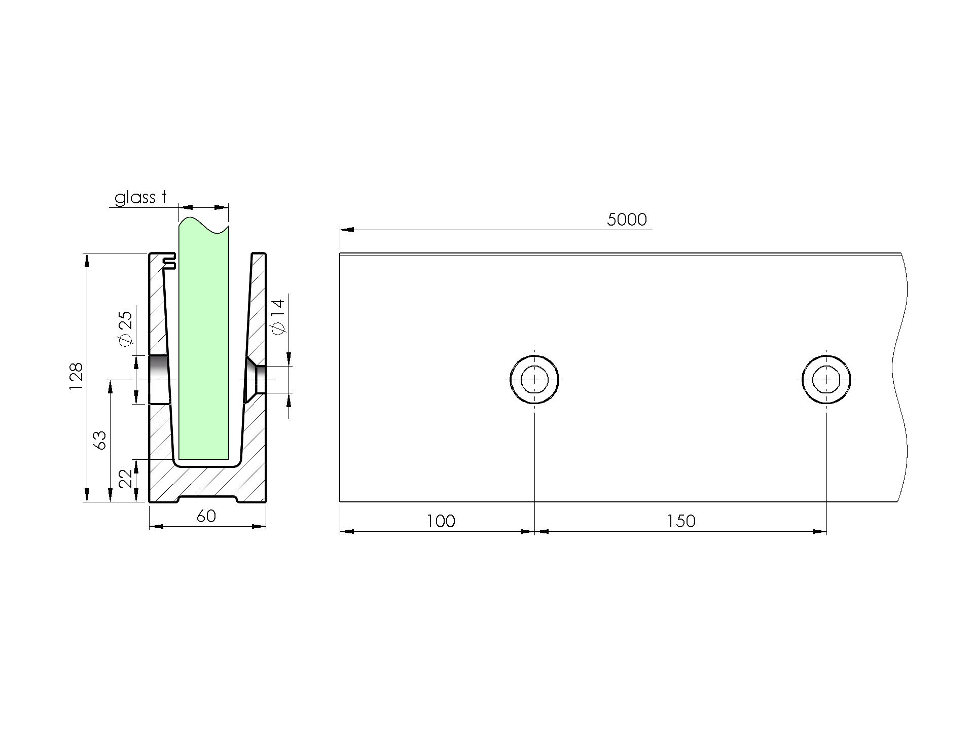 Profil balustrady szklanej Al AL/0009-5000-S-E