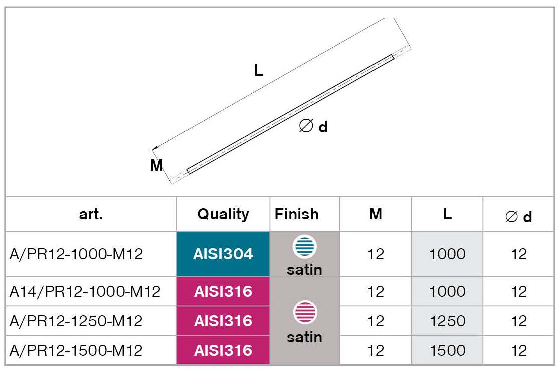 Odciąg do daszku, stal nierdzewna A14/PR12-1250-M12