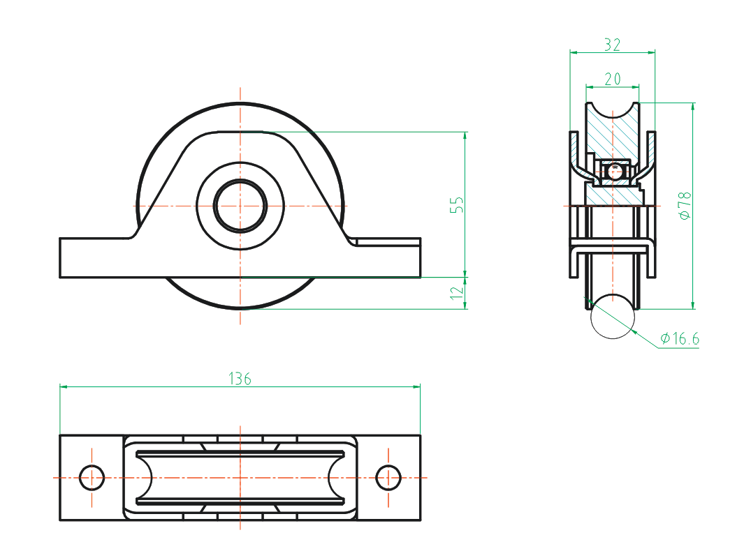Koło do bram przesuwnych z rowkiem U, INOX, D80 H8/31U-80-R10