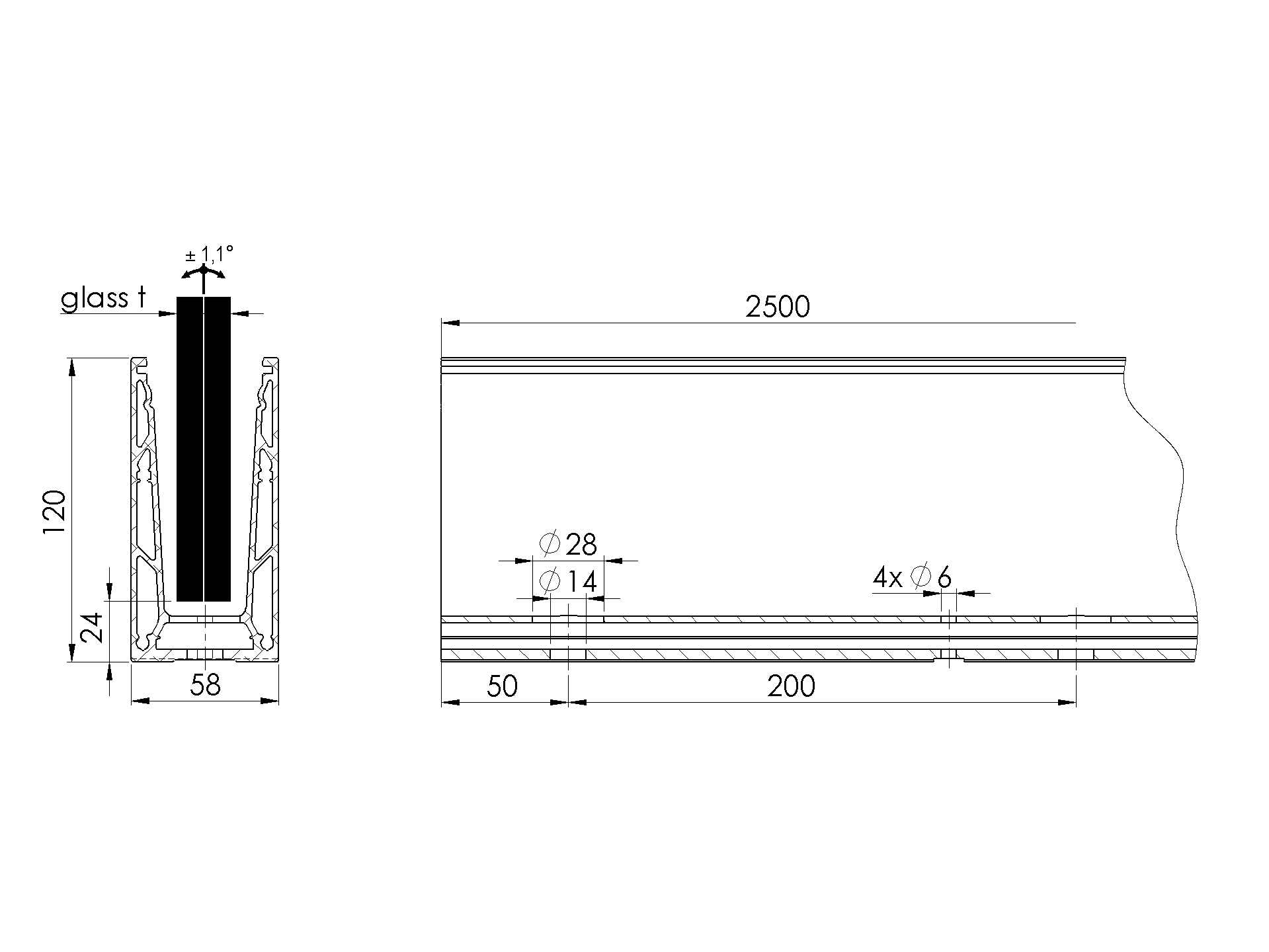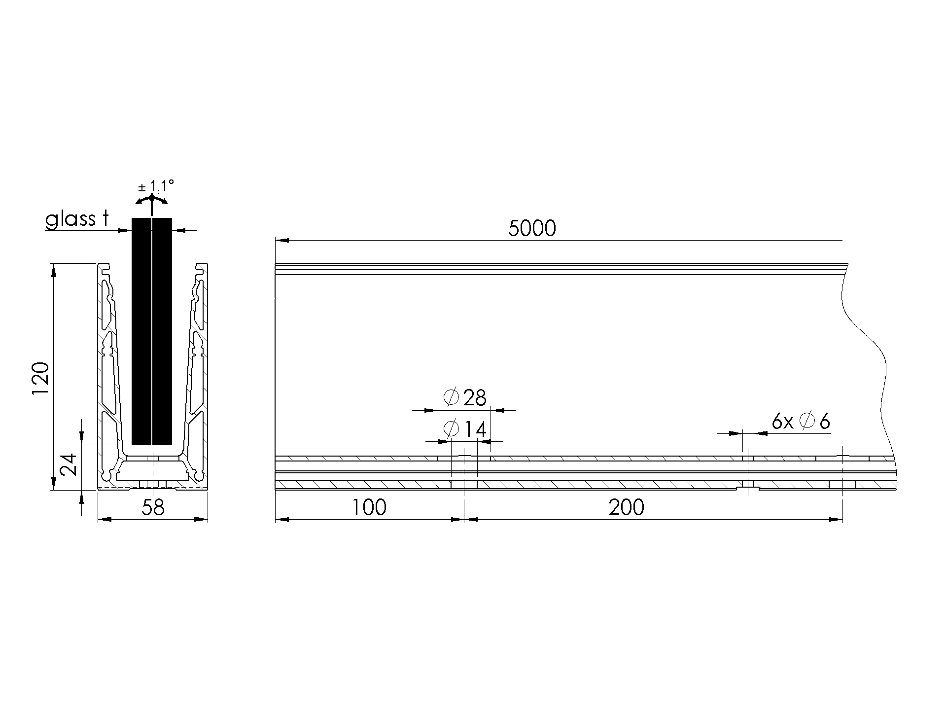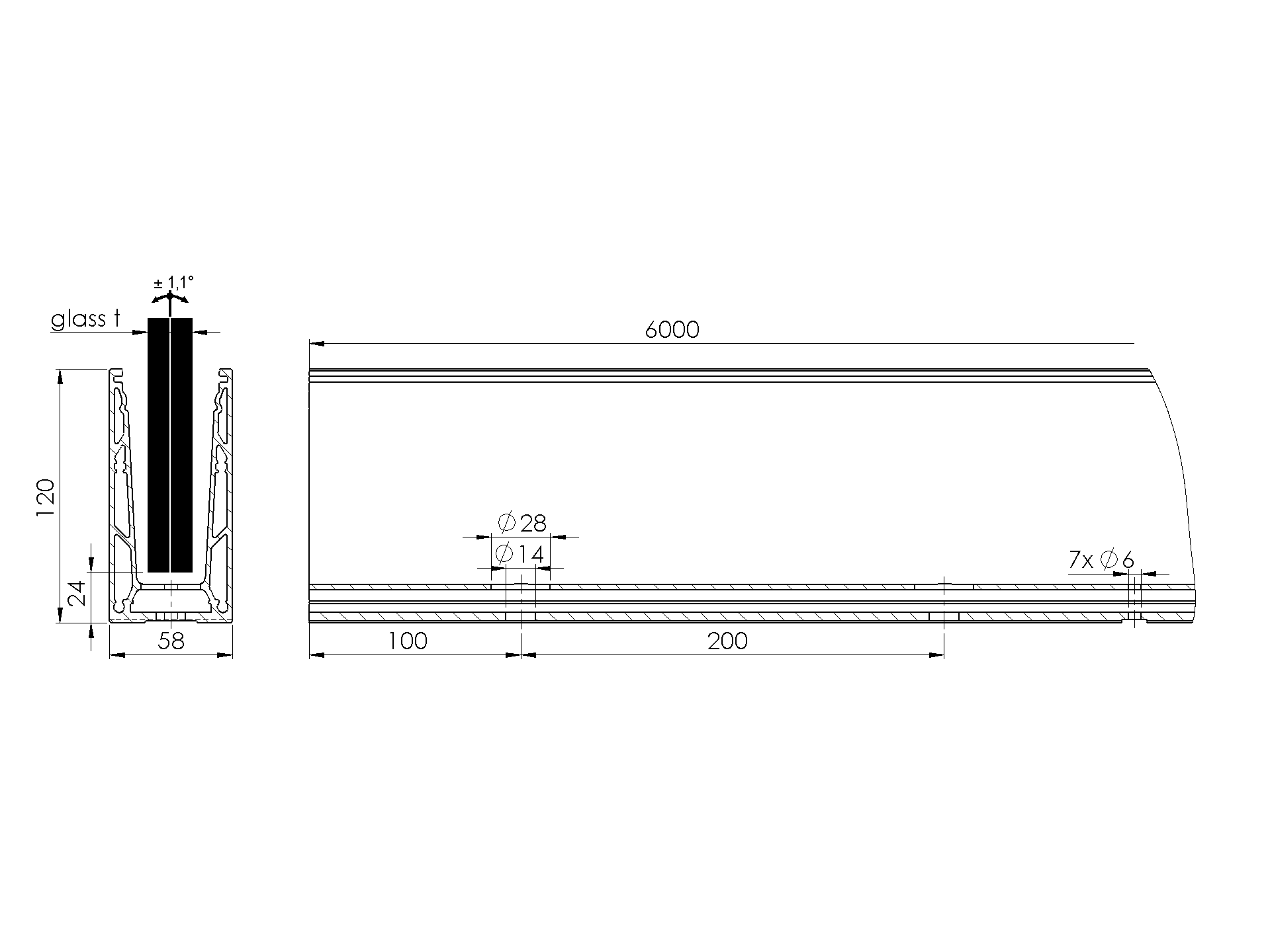 Profil balustrady szklanej AL/0004-LIGHT-6000-S-E