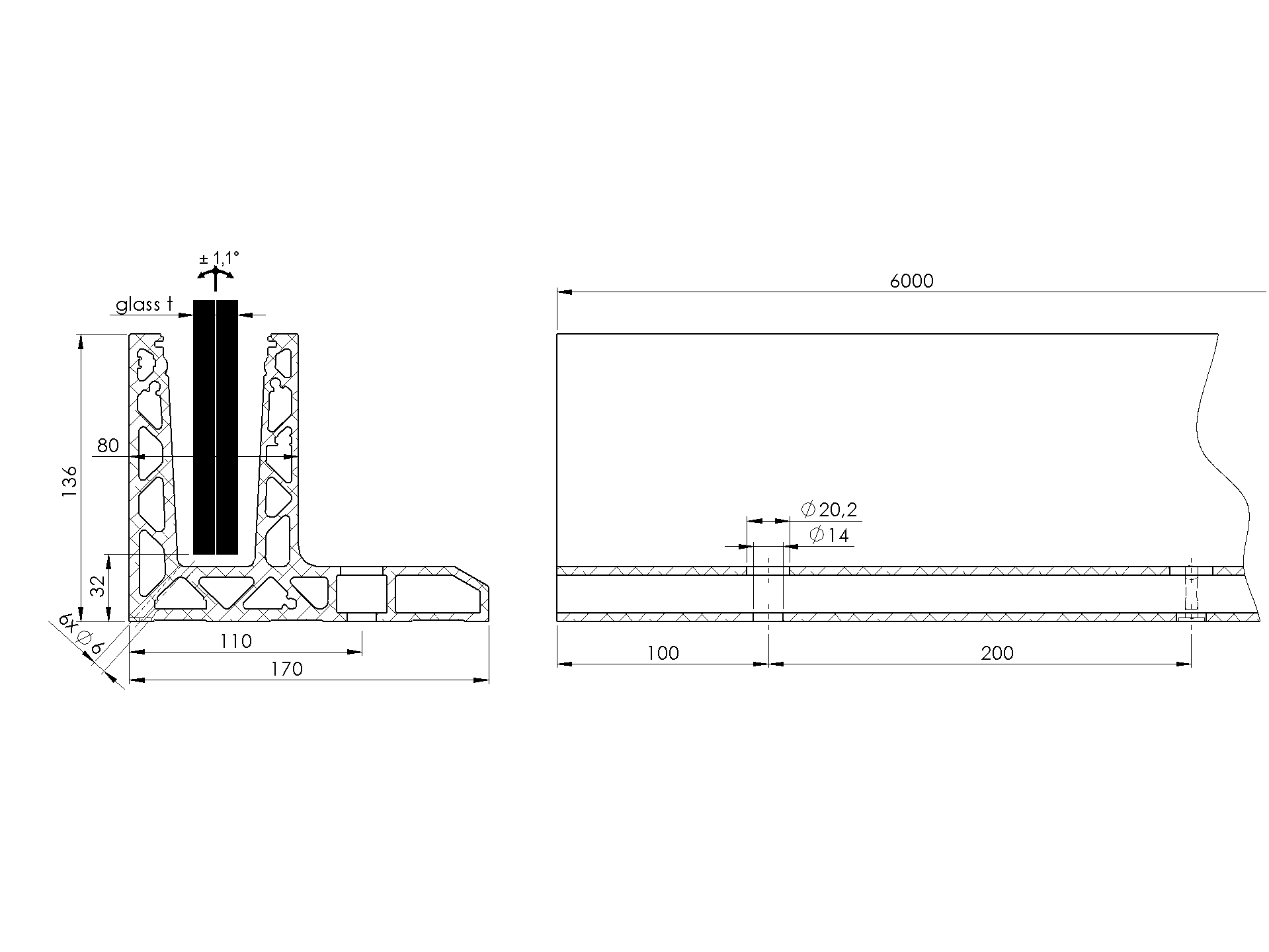 Profil balustrady szklanej AL/0018-6000-S-E