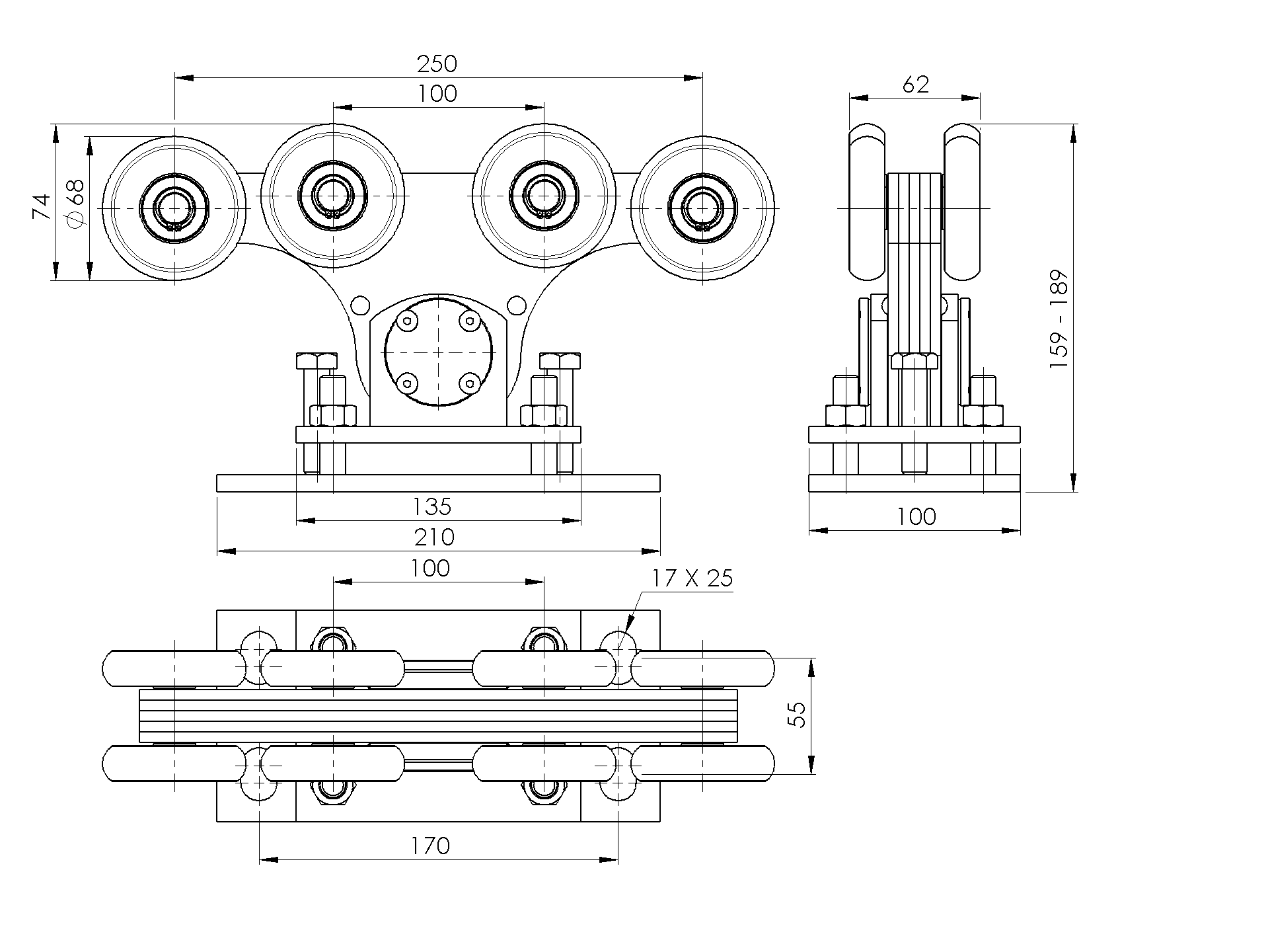 Rolka najazdowa Zn, profile 90x95mm H/14N-90x95-NYLON