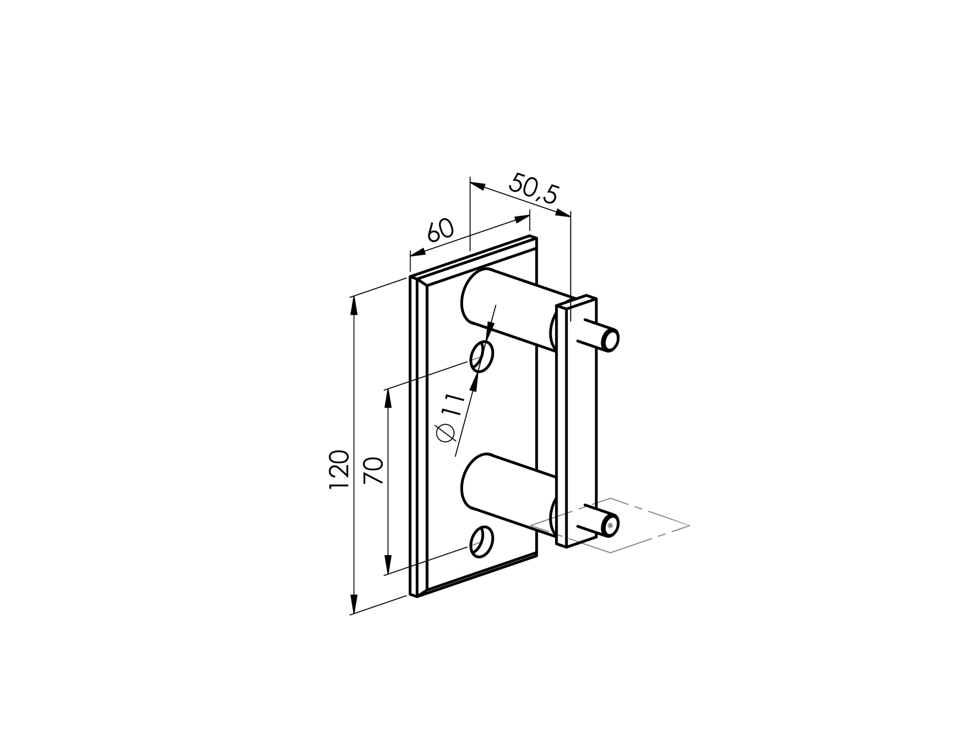 Kotwienie boczne prostokątne z dwoma otworami do zakotwienia - połączenie montażowe.