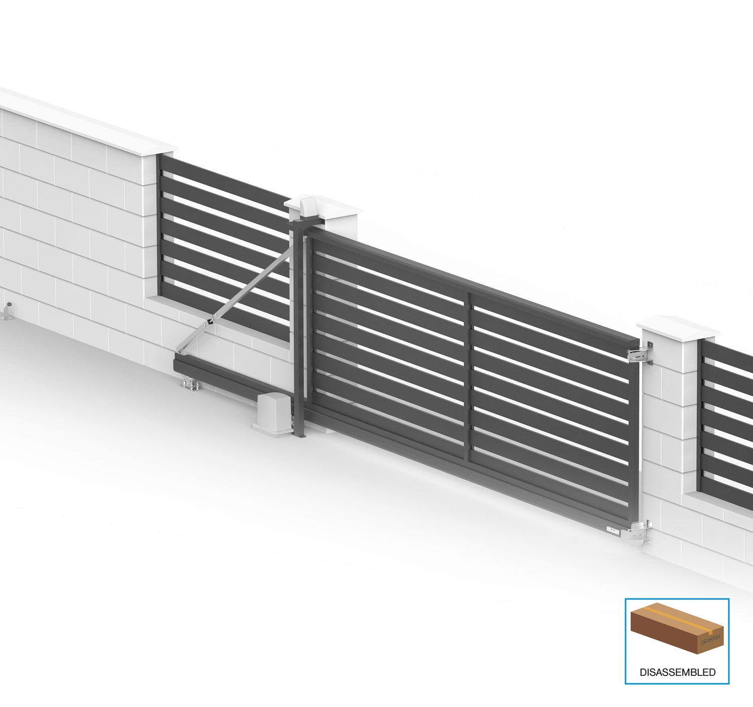 Samonosná posuvná brána sa dodáva ako montážny set v demontovanom stave. Je navrhnutá tak, aby jej montáž bola rýchla a jednoduchá, bez potreby zvárania. Zoznam komponentov, ktoré sa nachádzajú v sete nájdete v sekcii Diely setu. Set neobsahuje kotviaci materiál. Presne navrhnutý montážny systém zabezpečuje, že brána bude pevná a stabilná, pričom si zachová atraktívny vzhľad.