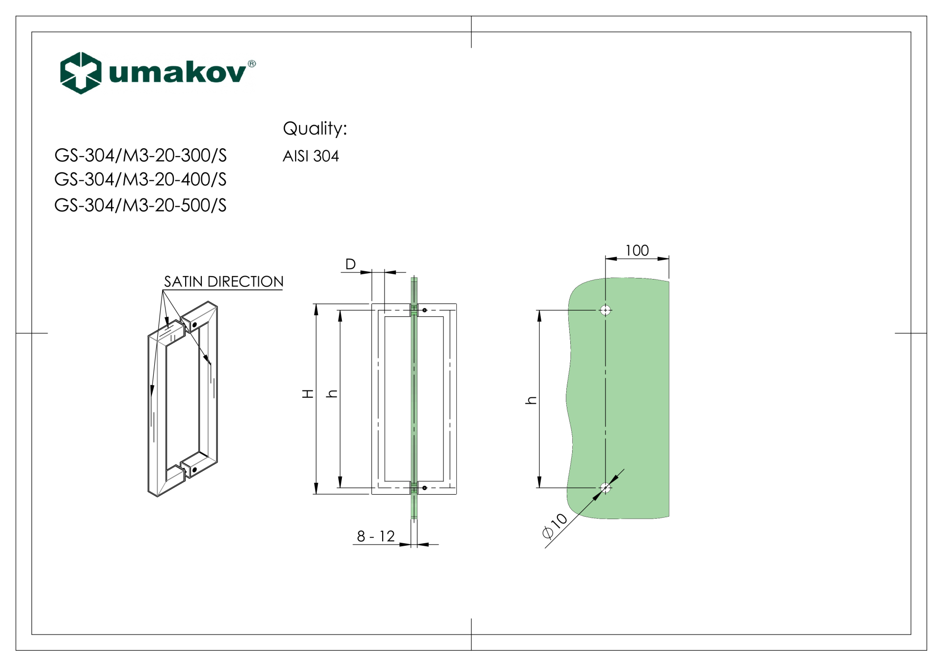 Madlo - brusený nerez AISI304, K320 GS-304/M3-20-300/S